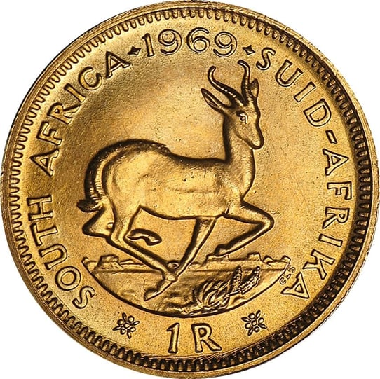 - Motiv: Auf der Vorderseite ist Paul Kruger, der von 1882-1902 Präsident der Südafrikanischen Republik war, abgebildet. Die Rückseite zeigt das südafrikanische Nationaltier, den Springbock.