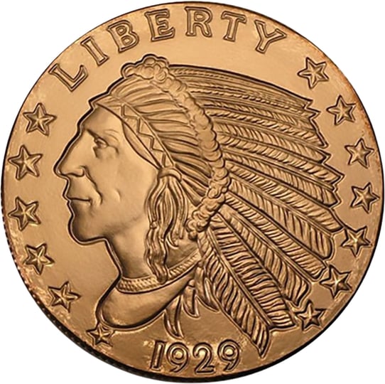 Historisches Design: Die 5 Unze Kupfermünze Incuse Indian 1929 besticht durch ihr anerkanntes Motiv, inspiriert von US-Münzprägungen