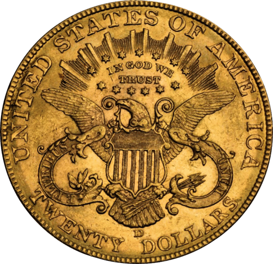 Der Eagle wurde erstmals 1795 als offizielles Zahlungsmittel von der unter anderem hierfür gegründeten US Mint ausgegeben. Die 20$ Münze wurde in den Jahren 1850 bis 1907 hergestellt.
