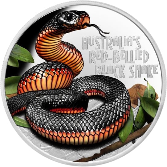 Auf den ersten Blick fallen bei dieser 1 Unze Silber Rotbauch-Schwarzotter sofort die schöne Colorierung und die hochwertige Prägequalität „Polierte Platte“ ins Auge. Sie gehört zu einer Münzserie, die sich thematisch ganz den gefährlichsten Tieren von Australien widmet. Ähnlich wie bei einigen Vorgängern der Sonderausgaben-Münzen ist bei der 1 Unze Silber Rotbauch-Schwarzotter eine lukrative Wertsteigerung möglich – nur 2.500 Stück weltweit gibt es davon. Dank der hochwertigen Colorierung glänzt das Schuppenkleid in schwarzer Färbung mit orange-rotem Bauch, was die Schlange sehr realistisch erscheinen lässt. Hinzu kommt auf der Motivseite noch der Schriftzug „Australia’s red-bellied black snake“. Auf der anderen Seite ist wie gewohnt das Porträt von „Elizabeth II“, eingeprägt, ebenso wie das Herstellungsjahr, der Nennwert und der Feinheitsgehalt.