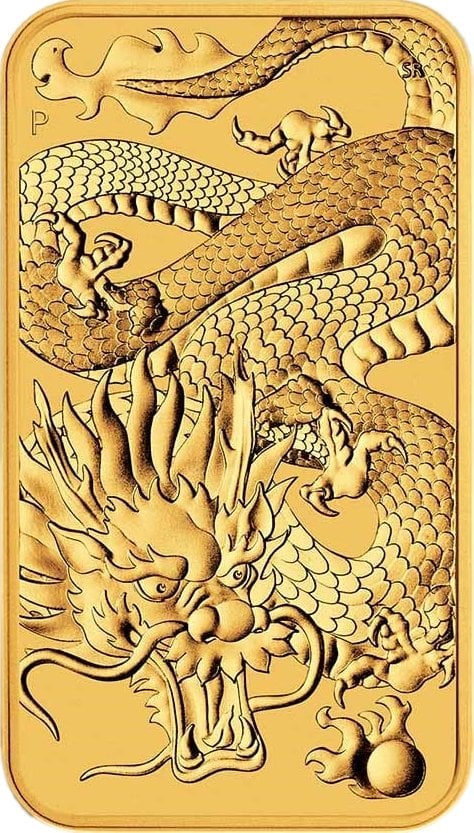Einzigartiges Design: Die detailreiche Prägung des Drachenmotivs auf hochreinem Gold verbindet kulturelle Bedeutung mit ästhetischer Eleganz