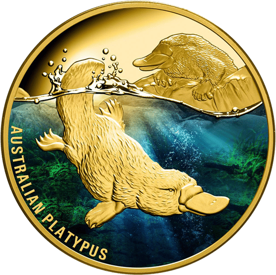 Die Motivseite der Goldmünze zeigt zwei Schnabeltiere, die sich am Wasser aufhalten. Das eine Tier sitzt gemütlich auf einem Stein und genießt die Sonne. Das andere Schnabeltier hat sogar den Sprung ins kalte Wasser gewagt und taucht an Wasserpflanzen und Steinen vorbei. Die Unterwasserwelt wurde farblich passend in Grün- und Blautönen eingefärbt. Die tierische Sammlermünze wurde insgesamt nur 150-mal hergestellt. Die Gesamtauflage ist also stark limitiert. Doch nicht nur das farbige Motiv trägt zur Besonderheit der Münze bei, sondern auch die ausgezeichnete Prägequalität: Polierte Platte. Auch die Feinheit der Münze ist hervorragend: 99,99 Prozent. Die Münze hat eine Stückelung von 1 Unze und einen Nennwert von 100 Niue-Dollar. Sie wurde im Jahr 2022 von der neuseeländischen Prägestätte New Zealand Mint hergestellt.