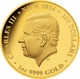 Auf der Rückseite der Münze thront das Bildnis von König Charles III, das die Verbindung zu der langen Tradition der königlichen Prägungen und die Bedeutung von Gold als königliches Metall unterstreicht. Umgeben von den Angaben zu Gewicht, Feinheit, Nennwert und Ausgabejahr, ist diese Münze ein Stück moderner Geschichte.
