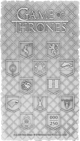 Die Rückseite steht dem in nichts nach. Vor einem kunstvoll geprägten Rautenmuster thront der ikonische „Game of Thrones"-Schriftzug. Darunter reihen sich in Wappenschilden die Sigils der großen Häuser auf: der Hirsch der Baratheons, der Löwe der Lannisters, die Rose der Tyrells, die Forelle der Tullys, der dreiköpfige Drache der Targaryens, die Türme der Freys, der Schattenwolf der Starks, die gekreuzten Pfeile der Boltons, der Krake der Greyjoys und das Zahnrad der Tyrells. Jedes einzelne Wappen ist gestochen scharf ausgearbeitet. Und dort, unten rechts, findet sich die individuelle Nummerierung: 000/250.