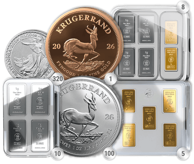 • Krugerrand-Goldmünzen (2026) – die wohl bekannteste Anlagemünze der Welt, mit dem ikonischen Springbock-Motiv, weltweit anerkannt und sofort handelbar