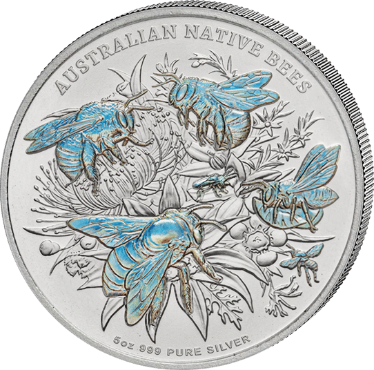 Australien beheimatet über 1.700 Arten einheimischer Bienen, von denen viele nirgendwo sonst auf der Erde vorkommen. Diese faszinierenden Bestäuber spielen eine unverzichtbare Rolle im Ökosystem des fünften Kontinents. Die Perth Mint hat dieses Thema mit bemerkenswerter Hingabe umgesetzt: Filigrane Flügelstrukturen, naturgetreue Blütendarstellungen und die charakteristischen Körpermerkmale der Native Bees – all das verschmilzt auf der großzügigen Fläche von fünf Unzen reinstem Silber zu einem Gesamtbild von außerordentlicher Schönheit.