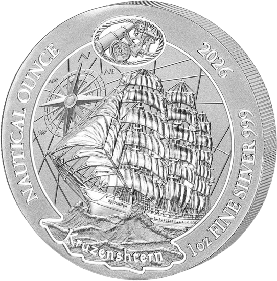 • checkmark greenMajestätische Kruzenshtern in feinster Detailtreue, geprägt in 1 oz Feinsilber 999/1000