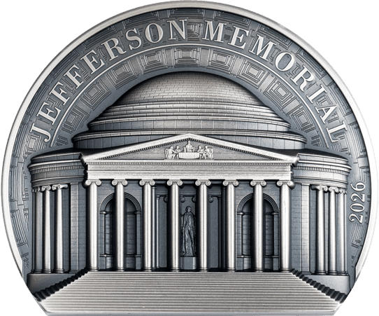 5 Unze Silber Jefferson Memorial 2026 – Ultra High Relief Meisterwerk in Antik Finish