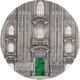 Was diese Münze jedoch von nahezu allen anderen Prägungen unterscheidet, ist das eingearbeitete grüne Tiffany-Glas. In den offenen Portalen beider Kathedralen schimmert es geheimnisvoll – ein Effekt, der an die berühmten Kirchenfenster erinnert, durch die seit Jahrhunderten Licht in heilige Räume fällt. Diese Technik ist kein Gimmick. Sie ist eine Kunstform für sich, die in der Numismatik ihresgleichen sucht.