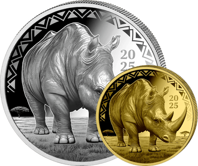 African Animals Nashorn Paket 2025 – Das Kraftpaket der Big Five in Gold und Silber