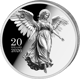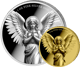 Beide Münzen zeigen einen detailreich ausgearbeiteten Engel mit weit gespannten Flügeln und gefalteten Händen – ein Motiv, das durch das Spiel aus spiegelblankem Grund und matter Reliefoberfläche besonders plastisch wirkt. Auf der Wertseite schreitet der Engel anmutig nach vorn, ergänzt durch das Wappen der Republik Liberia, die Jahreszahl 2026 sowie den jeweiligen Nennwert (20 Dollars Silber, 25 Dollars Gold).