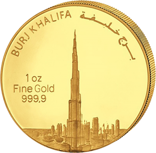 Symbol des Wohlstands: Die Münze zeigt den Burj Khalifa, ein Emblem des Fortschritts und der modernen Architektur, geprägt in reinem 999,9er Gold
