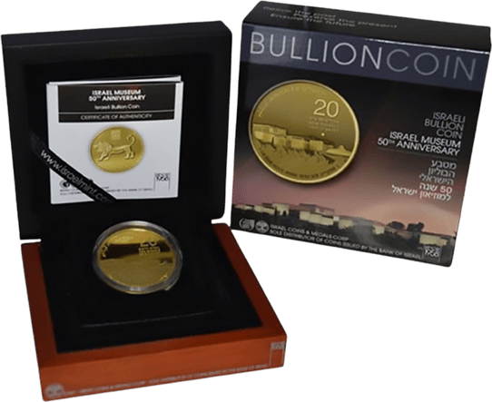 Die 1 Unze Gold 50 Jahre Israel Museum (Auflage: 3.600) ist eine sehr beliebte Anlagemünze aus den Israel und wird von der Holy Land Mint produziert. Die Goldmünze wird mit einem Feingewicht von einer Unze Gold (31,10 g) geprägt. Der hohe Goldgehalt von 999,9 besticht bei diesem Objekt genauso wie die edle Umverpackung (Etui, Kapsel, Zertifikat). Die israelische Sonderausgabe würdigt die wohl größte kulturelle Einrichtung des Staates Israel. Das berühmte “Israel- Museum” in Jerusalem, welches im Jahre 1965 unter dem Bürgermeister Teddy Kollek errichtete wurde. Mittlerweile zählt das Nationalmuseum zu den führenden Museen der Welt für bildende Kunst und Archäologie. Die Vorderseite der Goldmünze zeigt das Staatswappen Israels und einen brüllenden Löwen. Die Rückseite der Münze zeigt das Nationalmuseum Israels und wurde von Zvika Roitman designed. Am oberen Münzrand ist das Wort Jerusalem in den Sprachen Englisch, Hebräisch und Arabisch niedergeschrieben. Der Nennwert der Anlage- und Sammlermünze, der Jahrgang “2015” und das sogenannte „Star Of David“-Münzzeichen, befindet sich auf der rechten Münzseite.