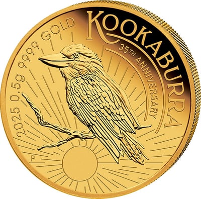 0,5g Gold Mini Kookaburra 35. Jubiläum 2025 PP (Auflage 2.500 | Polierte Platte)