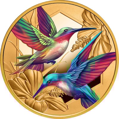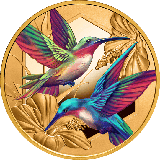 Exklusive Goldmünze mit faszinierendem Kolibri-Motiv in höchster Prägequalität