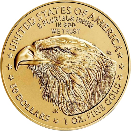 Das Design der American Eagle Goldmünze wird erstmals seit 1986 neu gestaltet. Die Vorderseite der Münze trägt nach wie vor die Liberty Lady, den Schriftzug „Liberty“ und das Prägejahr. Auf der Rückseite wird der Kopf eines Weißkopfseeadler abgebildet, welcher sehr detailliert gearbeitet wurde. Über den Kopf des Adlers ist die lateinische Inschrift “ E pluribus unum“ und die englische Inschrift “ in god we trust“ zu lesen. Beides sind Leitsätze der USA und auf dem Staatssiegel zu lesen. Umrandet wird das Motiv mit dem Schriftzug „United States of America“, „1 oz fine Gold“ und dem Nennwert von 50 Dollar.