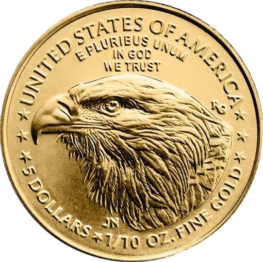 Der Gold American Eagle 2025 beeindruckt durch sein sorgfältig gestaltetes Design, das sowohl Ästhetik als auch Symbolik vereint. Auf der Vorderseite prangt majestätisch der Kopf eines Weißkopfseeadlers, umgeben von den Inschriften "United States of America", "E Pluribus Unum" und "In God We Trust". Diese Elemente stehen für die Grundwerte und den Stolz der Nation.