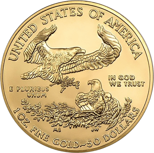 Die Vorderseite der vorliegenden American Eagle Reihe weist eine wahre Naturidylle auf. Zu sehen sind ein Weißkopfadler sitzen in seinem Nest. Von oben links kommt ein weiterer Adler mit Zweigen in den Fängen. Unter dem heranfliegenden Adler steht „E PLURIBUS UNUM“ und rechts über den im Nest sitzenden Adler „IN GOD WE TRUST“. Oberhalb des Motivs ist der Schriftzug „UNITED STATES OF AMERICA“ zu finden. Unter dem Nest stehen weitere Details zur Goldmünze in Form von „1OZ. FINE GOLD ~ 50 DOLLARS“. Die Rückseite beherbergt die stolz anmutende Lady Liberty. In ihrer Hand hält die ikonische Freiheitsfigur eine Fackel und einen Olivenzweig, der für den Frieden steht. Rechts von ihr findet sich das Prägejahr.