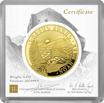 Die LEV-Mint ist die offizielle Prägeanstalt der Arche Noah aus Armenien. Demzufolge ist auch die Arche Noah Goldmünze eine der offiziellen Anlagemünzen als Zahlungsmittel der armenischen Bundesbank. Aus diesem Grund garantiert sogar die Regierung Armeniens das ordnungsgemäße Gewicht, die Feinheit und den Goldgehalt der Münze.