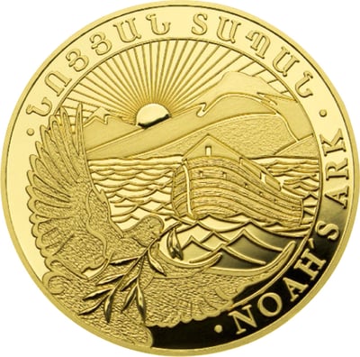 • Motiv: Die Münze zeigt eine eindrucksvolle Darstellung der Arche Noah und der Friedenstaube mit dem Ölzweig im Schnabel