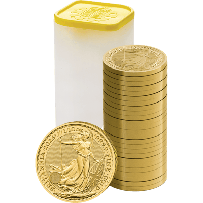 25 x 1/10 Unze Gold Britannia 2026 – Das Investorenpaket in der Münztube