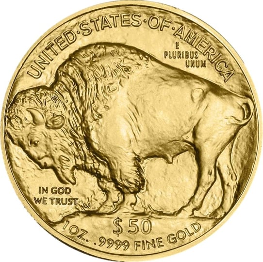 - Motiv: Auf der Vorderseite ist der amerikanische Bison, oft auch als Büffel bezeichnet, das ideale Motiv für diese US-amerikanische Goldmünze. Auf die Motivseite wird das Profil eines Indianers eingeprägt.