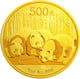 - Motiv: Die Münze zeigt auf der Wertseite drei aus einem Teich trinkende Pandabären - ein jährlich wechselndes, charakteristisches Merkmal der Gold China Panda Serie.