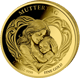 Die Vorderseite dieser kleinen Kostbarkeit zeigt eine Mutter, die ihr Kind zärtlich an sich drückt. Eingebettet in ein kunstvoll geschwungenes Herz, umrahmt von fließenden ornamentalen Linien, strahlt das Relief eine Wärme aus, die man förmlich spüren kann. Darüber prangt der Schriftzug „MUTTERTAG", darunter die Angaben „1/200 OZ 9999" und „FINE GOLD". Jedes noch so feine Detail – vom wallenden Haar der Mutter bis zu den geschlossenen Augen des schlafenden Kindes – wurde in der Qualität Polierte Platte mit höchster Präzision herausgearbeitet.
