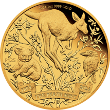 Das bekanntest Tier Australiens ist seit 1986 teil der Münzserie Austrailian Kangaroo in Gold, das Känguru erschien jedoch erst seit 1990 auf der Münze. Vorher zeigte die Bildseite den Welcome-Stranger-Nugget, woraufhin man die Münze auch Gold-Nugget oder Australian Nugget nannte. Die Goldmünze wird in verschiedenen Größen von 1/10 Unze bis 1 Kilogramm produziert.