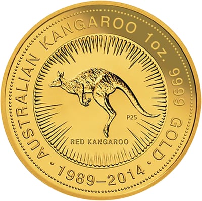 Der Münzdesigner dieser Sonderausgabe war Dr. Stuart Devlin. Das Motiv zeigt das „Red Kangaroo“, sowie die Jahreszahlen 1989-2014 und das Münzzeichen „P25“, welches sich auf das Jubiläum beziehen. Der Nennwert der Goldmünze beträgt 100 australische Dollar.