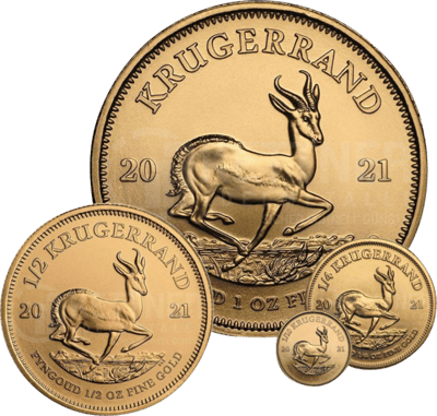 Alle Größen des Krügerrands 2021 in einem Satz