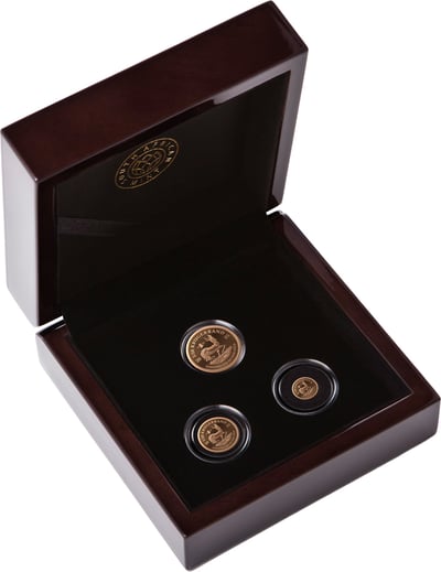 Krügerrand 3 Goldmünzen Fractional Set 200 Jahre Paul Kruger Privy Mark 2025 (Auflage: 100 | Polierte Platte)