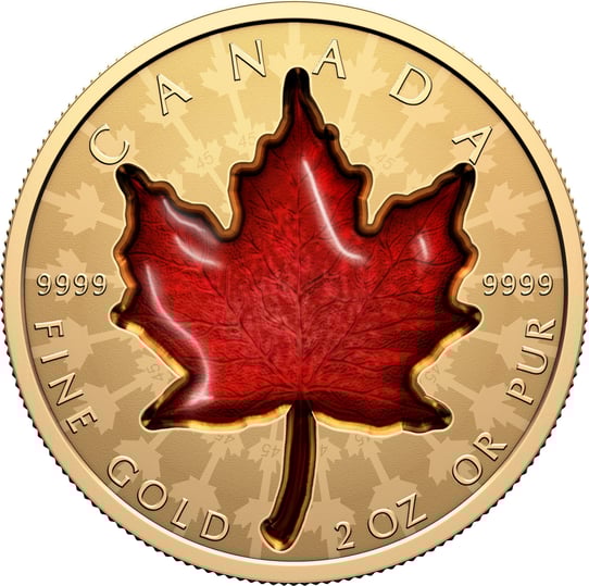 • Motiv: Spektakuläres rotes Ahornblatt mit transluzenter Emaille und Super-Incuse-Prägung