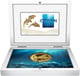 Die Motivseite zeigt eine Meeresschildkröte beim Tauchgang durch den Ozean. Dabei kommt sie an mehreren Korallen vorbei. Viele kleine Blasen haben sich gebildet. Es kommt einem fast so vor, als würde die Schildkröte direkt an einem vorbeischwimmen.