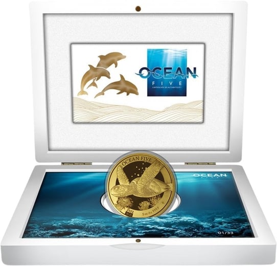 5 Unze Gold Ocean Five Schildkröte 2022 PP (Auflage: 33 | Polierte Platte | Zertifikat Nr. 1)
