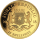 Die 1/50 Unze Gold Somalia Elefant 2018 PP ist Teil der beliebten African Wildlife Serie. Das jährlich wechselnde Motiv zeigt den majestätischen afrikanischen Elefanten in seiner natürlichen Umgebung. Die Detailtreue der Prägung lässt die Münze fast lebendig wirken und macht sie zu einem begehrten Sammlerstück. Auf der Rückseite der Münze ist das somalische Wappen abgebildet, was ihre Herkunft unterstreicht.