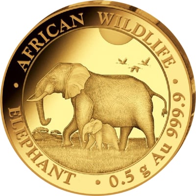 Als “African Wildlife“, “Somalia Elephant” oder “African Wildlife Elephant” – unter welcher Bezeichnung Sie die beliebte Anlagemünze aus dem ostafrikanischen Somalia auch suchen, Sie werden immer auf hochwertige Münzprägungen aus Edelmetallen mit unterschiedlichen Elefantenmotiven stoßen. Begonnen hat die Erfolgsgeschichte 2004, als die somalische Regierung sich für eine Produktion der grauen Riesen zunächst auf Silbermünzen entschied – als gesetzliches Zahlungsmittel im eigenen Land und Buillonmünze für ausländische Investoren. Und die hielten mit ihrem Interesse nicht lange hinter dem Berg. So stark entwickelte sich die Nachfrage, dass nach sechs Jahren die identische Anlagemünze auch in Gold geprägt wurde – zunächst mit dem Feingewicht einer Unze und einem Feingoldgehalt von 999, seit 2017 auch in den Stückelungen ½, ¼ oz und 0,5 Gramm in 999,9/1000.