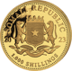 Die Wertseite der Goldmünze zeigt das Wappen der Republik Somalia, welches von zwei Leoparden gehalten wird. Zudem sind das Prägejahr (2023) und der Nennwert eingeprägt. Dieser beträgt 1.000 Schillings.