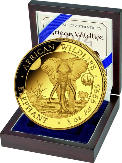 Die Gold Somalia Elefant Münze ist eine der exklusivsten und begehrtesten Sammlermünzen auf dem Markt. Mit einer Auflage von nur 100 Stück ist sie eine echte Rarität und bietet ein enormes Wertsteigerungspotential. Diese Sonderausgabe zur größten amerikanischen Münzenmesse ANA 2024 wird nur 100-mal verausgabt und ist beim Hersteller bereits komplett ausverkauft!