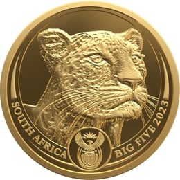 Die Gold Big Five Serie, geprägt von der South African Mint, gilt als eine der prestigeträchtigsten Münzserien weltweit und hat sich durch ihre exquisite Darstellung der afrikanischen "Big Five" - Elefant, Löwe, Büffel, Nashorn und Leopard - einen Namen gemacht. Mit der zweiten Auflage dieser Serie, der 5 Unze Gold Big Five II Leopard 2023, setzt die South African Mint diese Tradition auf eindrucksvolle Weise fort.