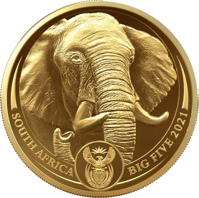 Entdecken Sie die Majestät Südafrikas: Die 5 Unze Gold Big Five II Elefant 2021