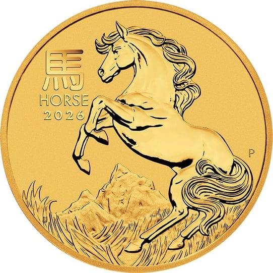 Auf der Vorderseite galoppiert ein prachtvolles Pferd mit wehender Mähne über felsiges Terrain. Die detailreiche Darstellung zeigt das Tier in voller Bewegung – ein Symbol für Dynamik und Fortschritt. Jede Muskelkontur, jedes Haar der wallenden Mähne wurde von den Meistergraveuren der Perth Mint mit höchster Präzision umgesetzt. Das chinesische Schriftzeichen für "Pferd" sowie die Jahreszahl 2026 ergänzen das Design harmonisch.