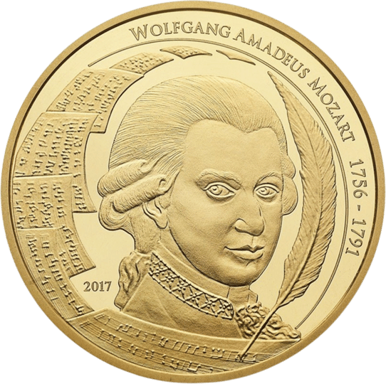 Die 1/2 oz Gold Mozart Coin ist eine Weltneuheit. Sie ist die erste Anlagemünze, die sich Mozart, dem wohl berühmtesten Komponisten der Wiener Klassik, widmet. Die Anlagemünze ist ein offiziell anerkanntes Zahlungsmittel. Der Nominalwert ist in US-Dollar ausgewiesen. Sie zeichnet sich durch einen besonders hohen Feingehalt von 999,99 bei Gold und 999,9 bei Silber aus, was auf dem Markt eine Seltenheit darstellt.