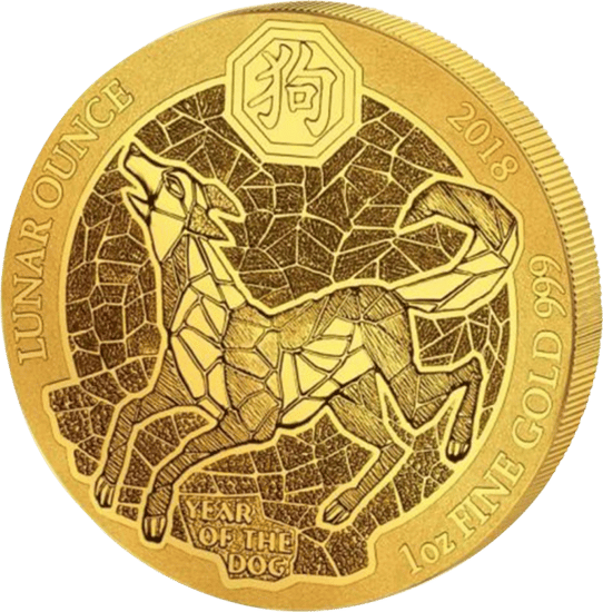 Geprägt wurde die Münze im Jahr 2018, dem Jahr des Hundes im chinesischen Tierkreiszeichenkalender. Auf der Vorderseite der Münze ist ein stilisiertes Hundemotiv zu sehen, das durch glänzende und matte Polierungen einen besonderen Effekt erzielt. Zusätzlich befindet sich auf der Motivseite das chinesische Zeichen für das Jahr des Hundes. Die Umschrift lautet „LUNAR OUNCE, 2018, 1 oz FINE GOLD, YEAR OF THE DOG”.
