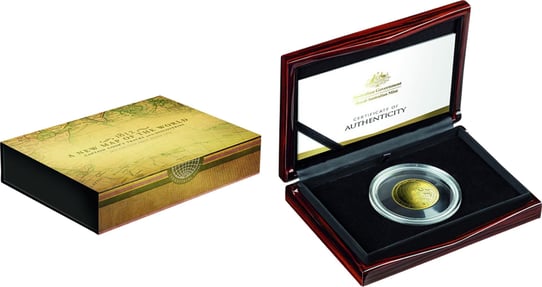Die 1 Unze Gold 1812 Neue Weltkarte als “Polierte Platte” ist 31,10 Gramm schwer und das Ausgabejahr 2018. Die Münze wird von der Royal Australian Mint geprägt. Es handelt sich hierbei um eine neue Weltkarte aus dem Jahr 1812, welche im 18. Jahrhundert die berühmten Reisen von Kapitän James Cook und die Phantasie etlicher Generationen enthüllte. Die Weltkarte stellt die bis dato geheimen Teile der südlichen Hemisphäre dar. Die Aufregung und das Drama dieser Entdeckungszeit wird mit dieser exklusiven und gewölbten Weltkarten-Münze verkörpert. Die gewölbte Goldmünze basiert auf seltenen und historischen Karten aus dem 18. Jahrhundet, welche damals schon sehr genau waren.