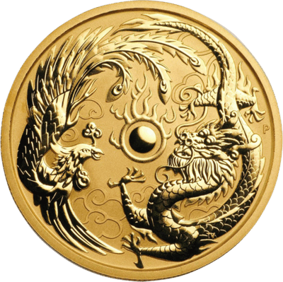 Seit 2018 wird die Münze Drache und Phönix von Perth Mint in der Stückelung 1 oz verausgabt.  Auf diesem Sammlerstück sind die Fabelwesen der Drache und der Phönix zusehen. Sie stehen sinnbildlich für Weisheit und Erleuchtung. Der Drache gilt in der chinesischen Kultur oft als Symbol für Macht, Reichtum, Stärke und Glück. In der Mitte ist eine flammende Perle zu sehen. Die Goldmünze besitzt eine Feinheit von 999,9/1000.