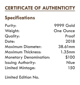 • Material / Feinheit: Die Münze besteht aus 99,99% reinem Gold, was sie zu einem äußerst wertvollen Anlageprodukt macht.