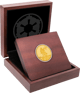 Die 1 Unze Gold Boba Fett Star Wars 2017 PP wurde in Neuseeland von der New Zealand Mint geprägt. Sie hat einen Durchmesser von 32,00 mm und ein Feingewicht von 31,10 g. Die Münze besteht aus reinstem Gold mit einer Feinheit von 999,9/1.000. Sie hat einen Nennwert von 250 Niue-Dollar und wurde im Jahr 2017 geprägt. Die Münze wird in einem Etui geliefert und ist Neuware.