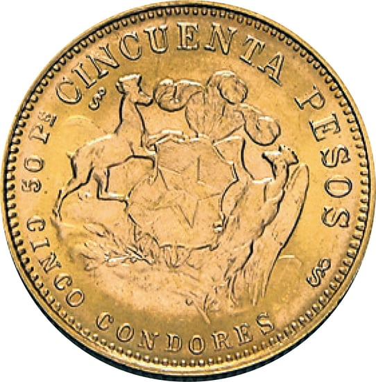 Der Name der Währung in Chile änderte sich im letzten Jahrhundert mehrfach. Zeitweise zahlte man mit dem Cóndor (= 10 Pesos), dann wieder mit dem Peso, danach mit dem Escudo und schließlich landete man nach dem Währungswechsel im Jahr 1974 wieder beim Peso. Die Banca Central de Chile gab im 20. Jahrhundert Goldmünzen mit den Nennwerten 20, 50 und 100 Pesos heraus. Die 20-Pesos- und die 100-Pesos-Goldmünzen erschienen von 1926 bis 1980, die 50-Pesos-Goldmünzen von 1926 bis 1974. Der Feingoldgehalt dieser Goldmünzen beträgt 900/1000, der Restanteil besteht aus Kupfer, der den Münzen einen rötlichen Farbton und eine größere Härte verleiht.