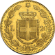 Die 20 Lire Gold aus Italien zeigt uns auf der Motivseite König Umberto I., der mit vollständigen Namen Umberto Rainerio Carlo Emanuele Giovanni Maria Ferdinando Eugenio di Savoia hieß. Er war von 1878 bis 1900 König von Italien.